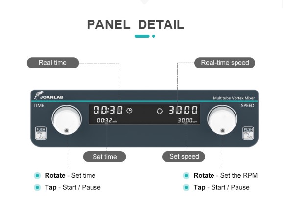 Controle Programável: Permite ajustar a velocidade em uma faixa de 500 a 1200 rpm e configurar o tempo de operação de 1 minuto a 8 horas.