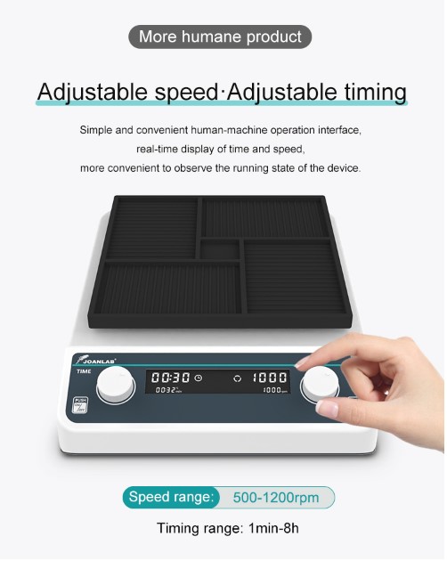 Design Prático: Inclui bandeja de silicone antiderrapante para garantir a segurança e estabilidade das amostras durante a agitação.