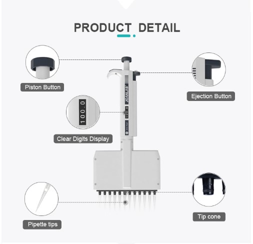 Pipeta Multicanal autoclavavel 8 canais 0,5-10ul - Eficiência para Microplacas - Fabricante Joanlab