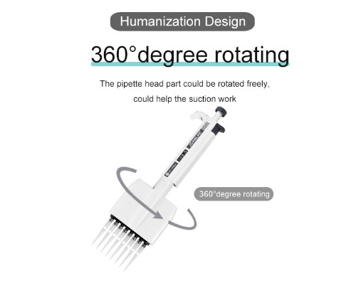 Cabeça de Dispensação Giratória: Rotação de 360° para um posicionamento angular e confortável das ponteiras, facilitando o acesso a tubos e placas de formatos variados.